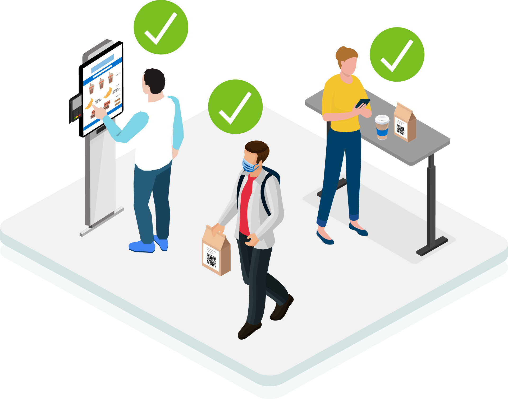• Customers never have to touch a kiosk or payment device